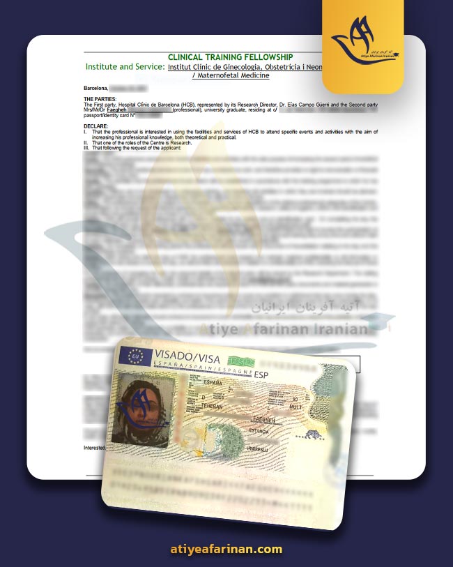 نمونه ویزا و پذیرش: فائقه نوریان 36 ساله فلوشیپ پزشکی بارسلونا