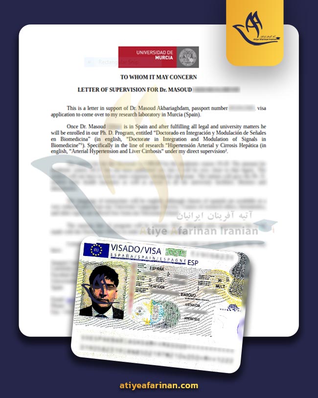 نمونه ویزا و پذیرش: مسعود اکبری اقدم 36 ساله دکتری دانشگاه مورسیا